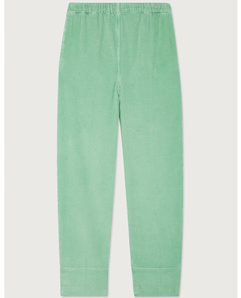 American Vintage Padow Cucumber Trousers, a slouchy pair of soft jumbo cord pants with a stretchy drawstring waist and pockets. These straight leg corduroy trousers have a relaxed fit, pockets and a super soft finish. Extra long these velvety soft trousers turn up at the ankles and feature a drawstring tie in the inside of the waistband. Available in other colours.