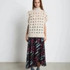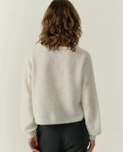 American Vintage Razpark Water Green Knit, a very pale green knitted v neck sweater with long balloon sleeves. Short and cropped in the body this casual lightweight jumper has a fluffy texture.Â
