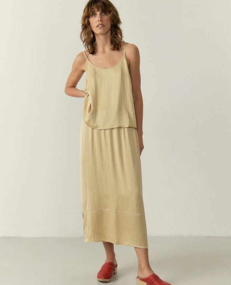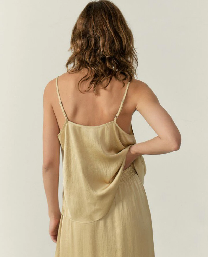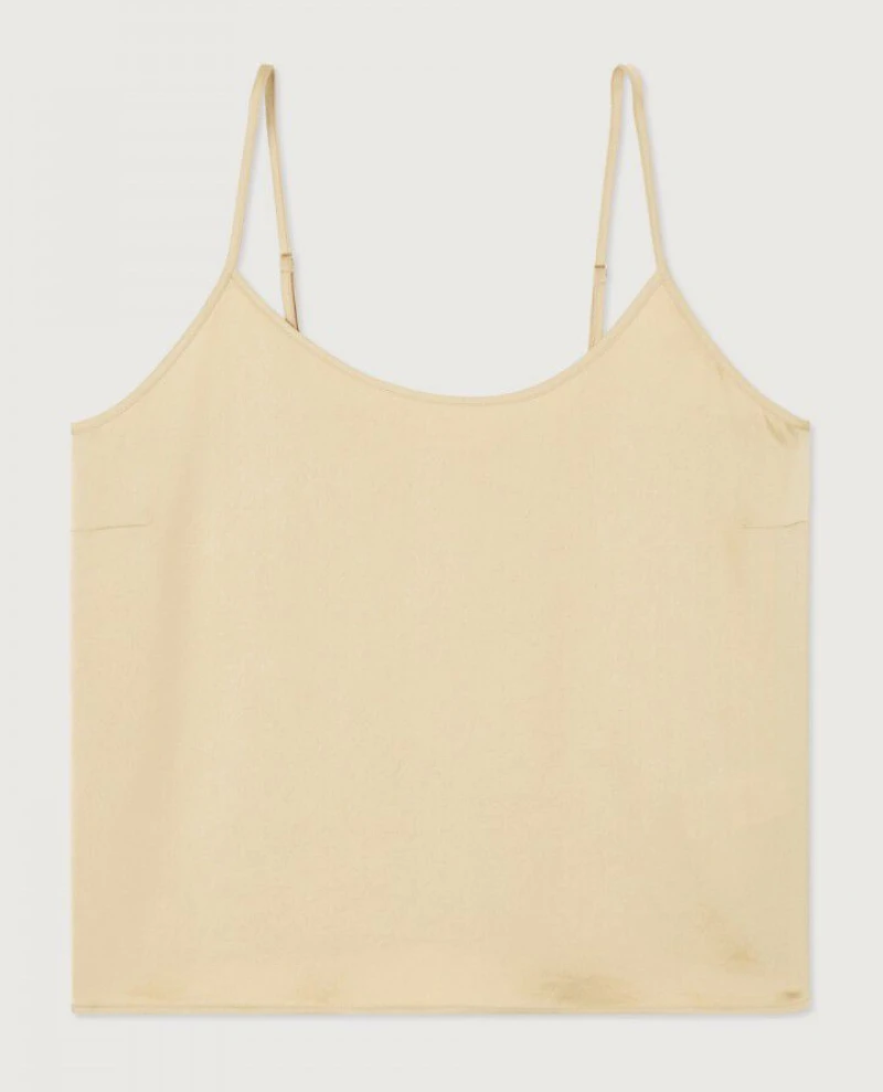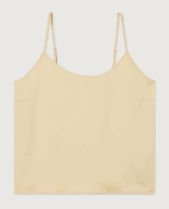 American Vintage Widland String Camisole, a neutral toned spaghetti strap camisole with a subtle sheen. Wear as is or beneath classic tailoring and soft knits.