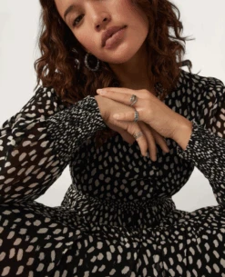 Make a statement in the classic Ba&sh Bianca Black Spotty Midi Dress. Crafted from high-quality fabric, it features a beautiful spotty pattern, elegant midi length, long sleeves, and a fitted waist with a flattering v-neckline. Its timeless design ensures you look stylish no matter the occasion.