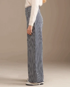 The Bellerose Parthe Stone Wash Wide Leg Jeans offer a stylish and bold look with its contrasting graphite blue and white striped design. Featuring a high-waisted finish and pockets to the front and back, plus a wide straight leg, these jeans provide a modern, comfortable fit for an elevated, timeless style.