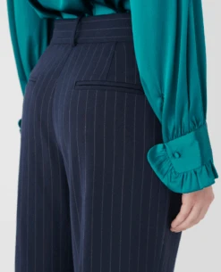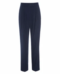 These Dea Kudibal Rinina Blue Pinstripe Pleated Trousers boast timeless tailoring and a classic navy-blue pinstripe design. A mid to high rise and straight leg offer a flattering style, while pleating adds a chic finishing touch. Look amazing while wearing tailored trousers that stand the test of time.