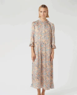 Dea Kudibal Rosanna Freesia Peacock Dress, the perfect relaxed summer dress. Made from a viscose and elastane crepe, the Rosanna has a beautiful floral print in yellow tones, a round neck, ruffle details on the cuffs and three-quarter length sleeves.