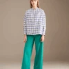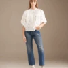 Des Petits Hauts Rody Blouse, a graphic monochrome print dress with a voluminous, floaty fit. Complete with rounded neckline and button down front, the Rody blouse has 3/4 length puff sleeves.