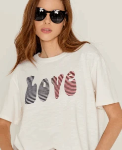 Our Five Ecru Love T-Shirt offers effortless style and comfort. Crafted from a soft cotton blend in a versatile round neck cut, it features short sleeves and stylish printed Love lettering to the front. Feel classic and confident all day long.