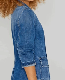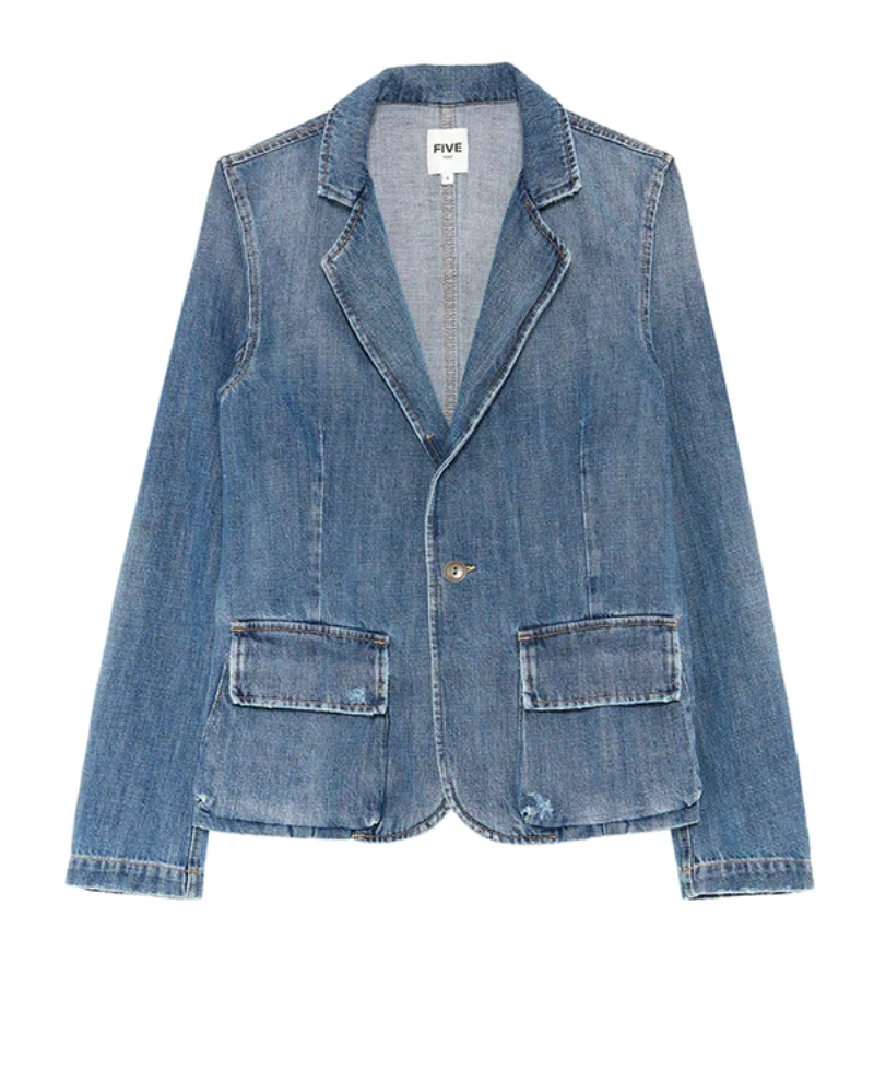 Five Jeans Valina Used Blue Jacket, a washed denim jacket in blazer style. With single button fastening, the Valina Jacket is finished with lapel detail and pockets to the front.