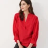 Hartford Turette White Blouse, a pure white cotton with voluminous half sleeves which are finished with elasticated hem. Complete with a simple round neck and four button fastening to the front.