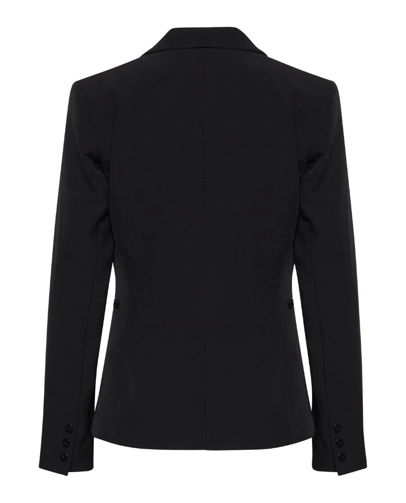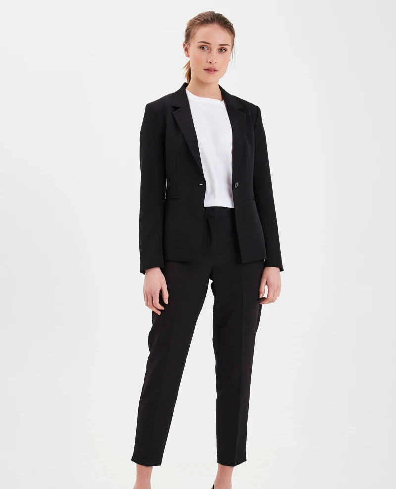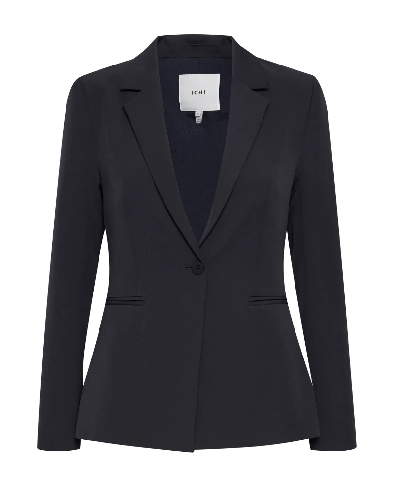 Ichi Lexi Black Blazer, a timeless tailored blazer in black. This style never goes out of fashion – complete with slim lapel, pockets to the front and single button fastening.