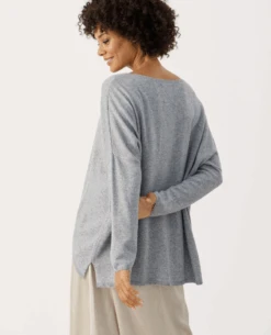 Ichi Poet Koi Marl Knit, a cosy knit in bright koi orange marl. With crewneck and long sleeves, the Poet knit has stitched ribbed detail to the front and back as well as ribbing on cuffs and neckline.