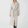 Ichi Tazi Doeskin Rain Jacket, a light beige brown water proof rain jacket with long sleeves, a hood and a zip and popper fastening down the front. The Tazi knee length rain coats are a best seller at Biscuit each new season due to them being both practical and stylish. These jackets are lightweight so perfect for traveling.Â