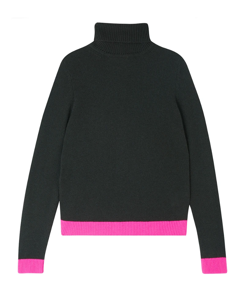 Jumper1234 Contrast Rib Khaki Rollneck is expertly crafted using soft cashmere fabric for a warm and comfortable feel. With a relaxed fit, a comfortable rollneck and long sleeves, and a contrasting pink cuff and hem, this garment offers the perfect combination of comfort and style.