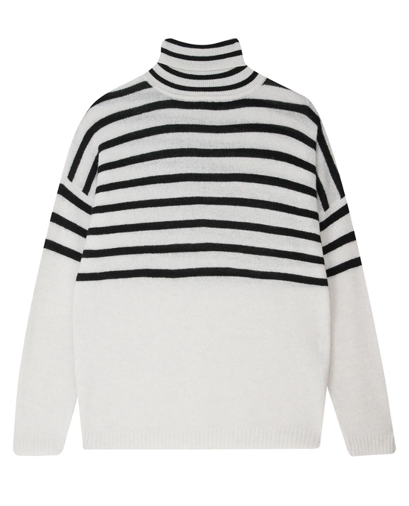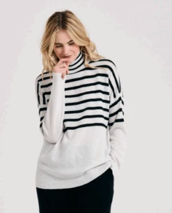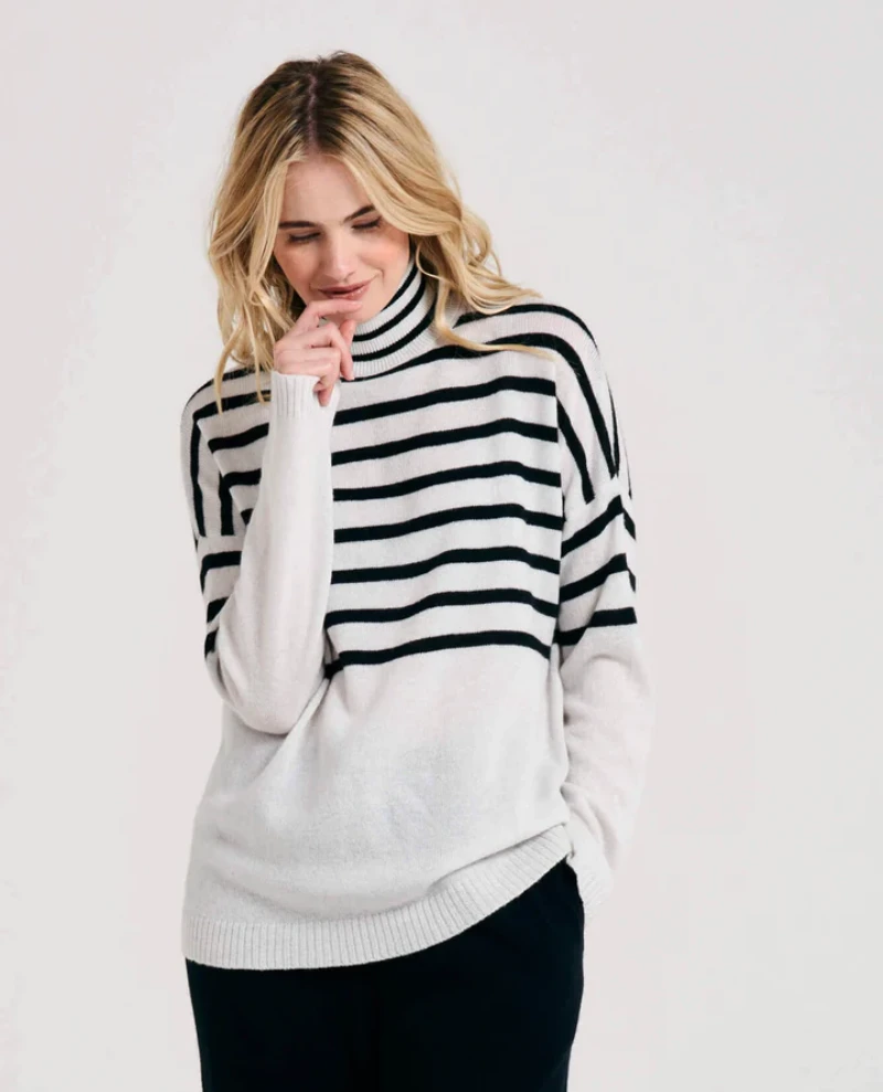 This sophisticated Jumper1234 Stripe Rollneck Marble Black Knit is the perfect addition to your wardrobe. Crafted with fine cashmere knit and featuring a timeless design, this elegant jumper is sure to make a statement. The subtle black and white stripe detailing adds a stylish touch to your look.