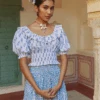 Lollys Laundry Denver Blouse, a 3/4 length sleeve blouse with elastic and a v-neckline. It is a cool and feminine wrap-blouse with band closure and subtle gatherings at shoulders. It is made in a stretchy material and the fit is regular.