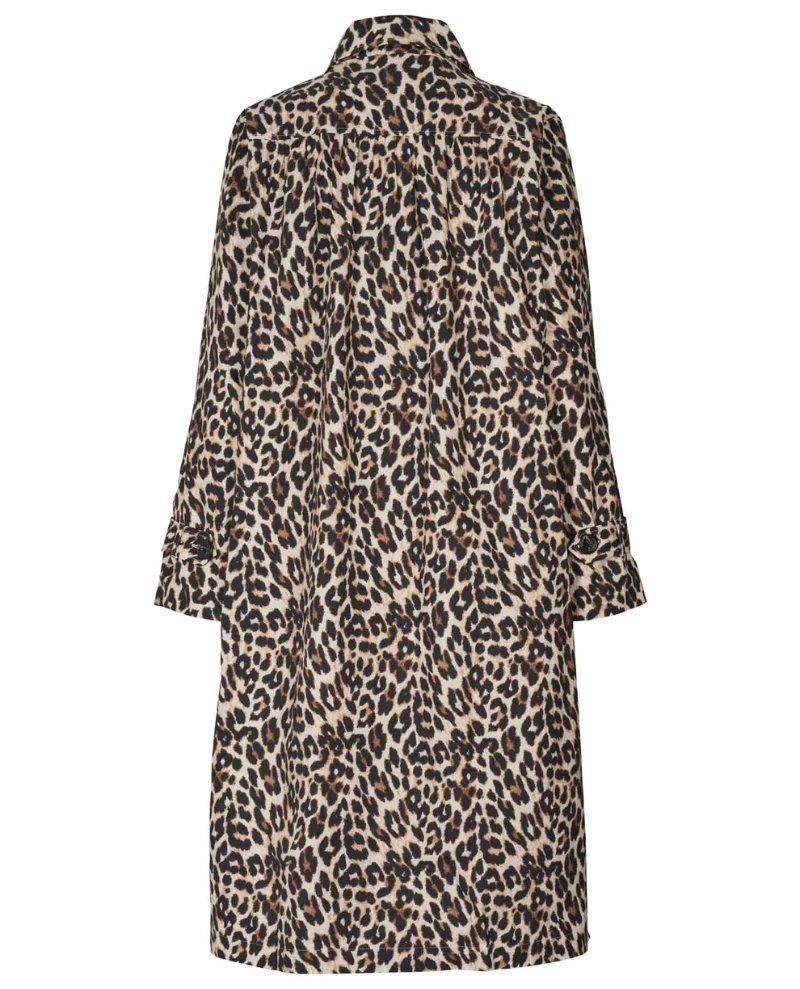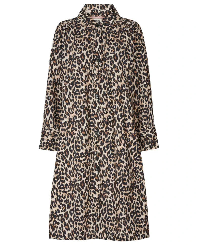 This season, rock your look with the Lollys Laundry Mikala Leopard Jacket. It is expertly crafted with premium 100% cotton in a classic long style with a leopard print and a standout pink lining. Features include a front button opening, long sleeves with adjustable cuffs, and side pockets. The fit is normal, and should be styled slightly oversized for a fashionable finish.
