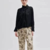 MDK Lucia Black Leather Shirt, a buttery soft black leather shirt with a pointed collar and long sleeves. Fastening down the front with poppers the Lucia shirt has two chest pockets.Â