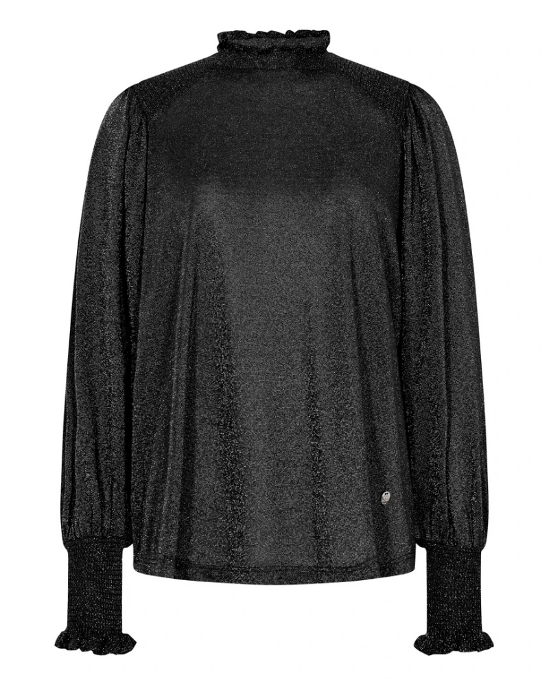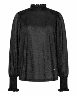 The Mos Mosh Kaliva Black Blouse is the perfect choice for a sophisticated and feminine look. This blouse features a high frill neckline and cuffs, as well as a floaty fit that allows you to dress it up or down. Add sophistication to any ensemble with this classic piece.