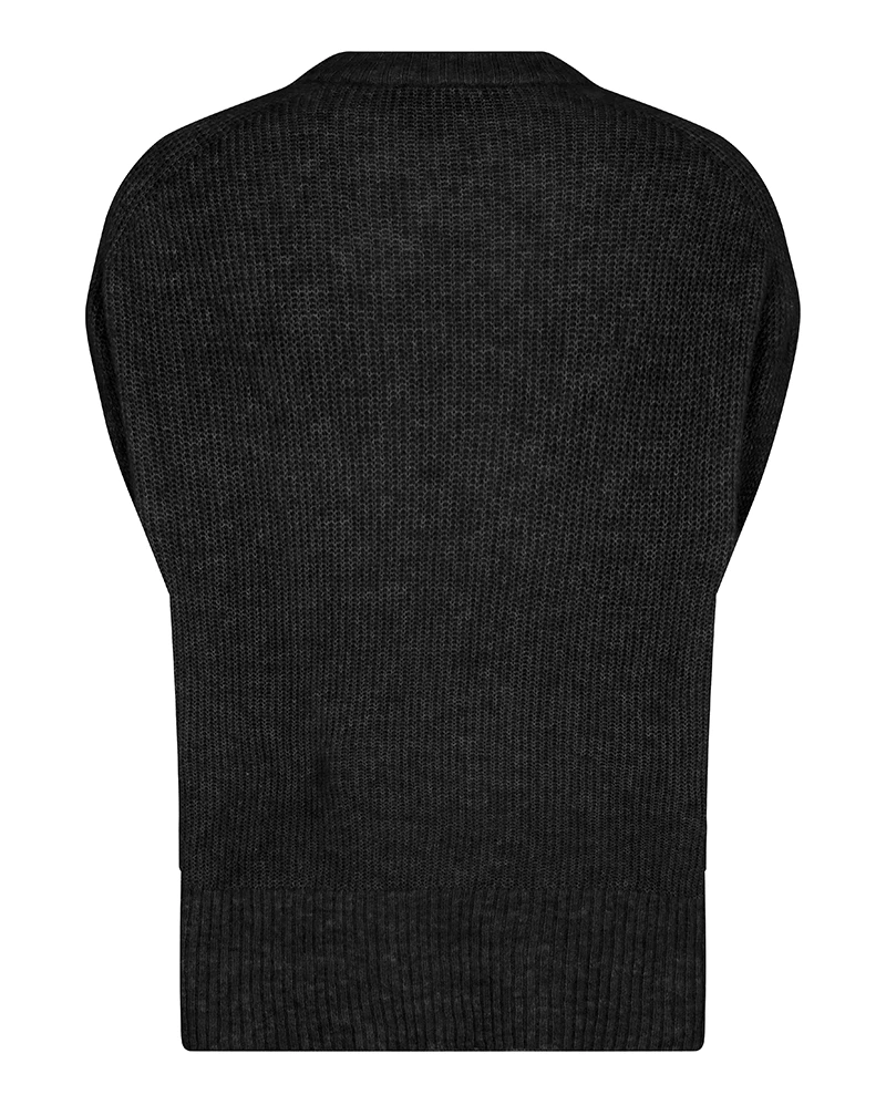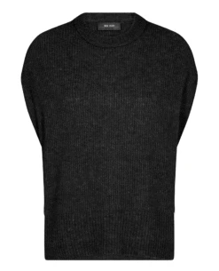 Mos Mosh Thora Black Sweater Vest, a sleeveless black knitted pullover sweater with a round neck and a loose boxy fit.Â