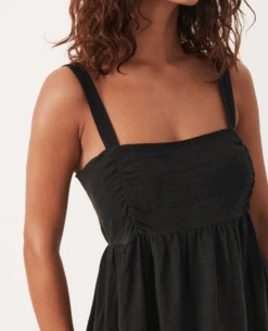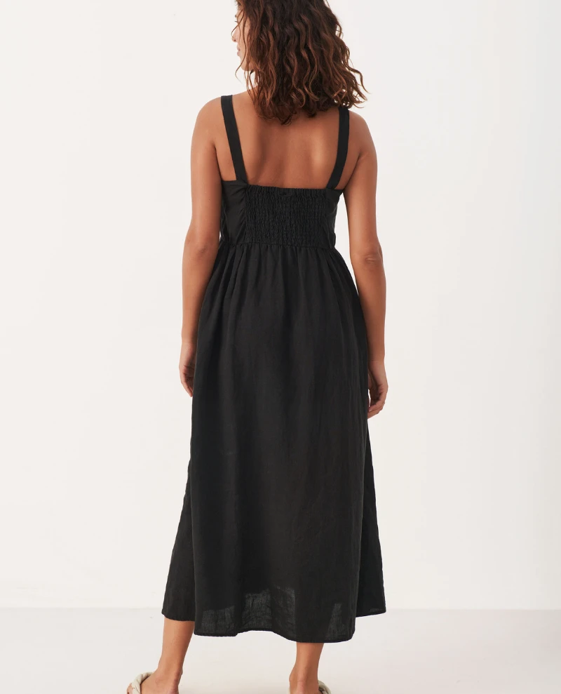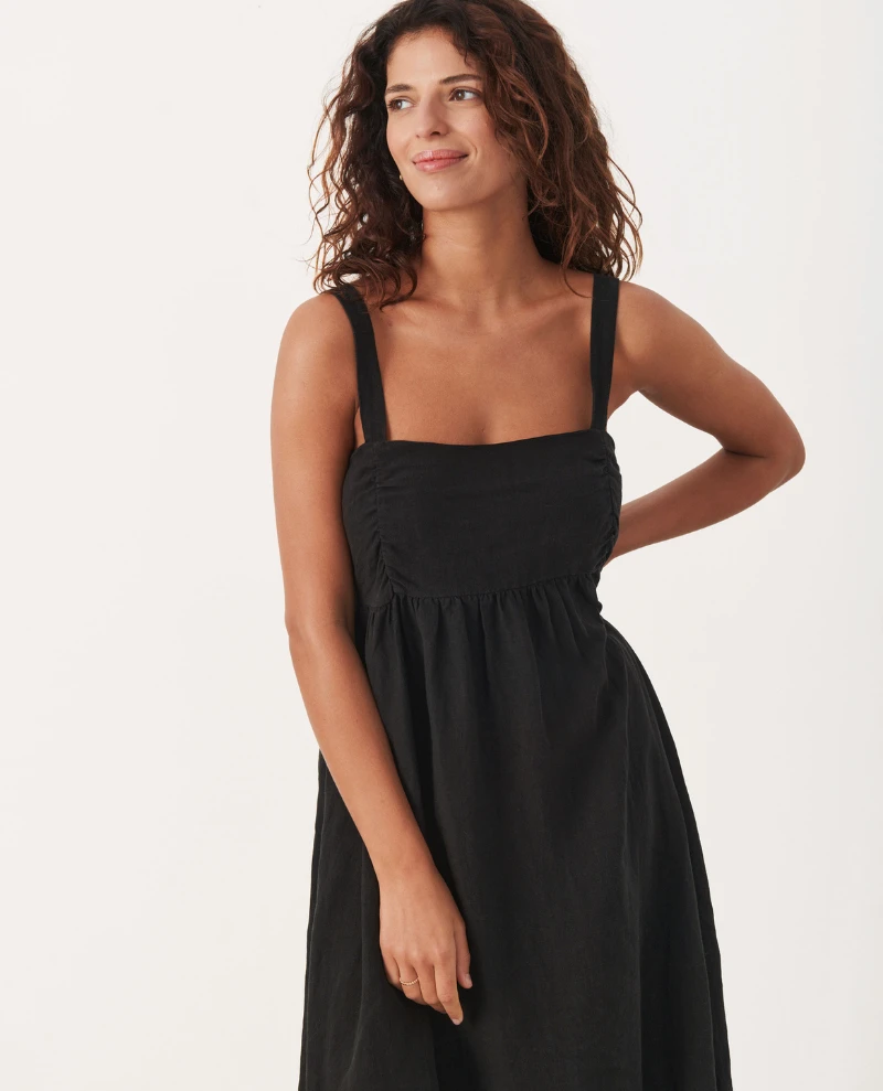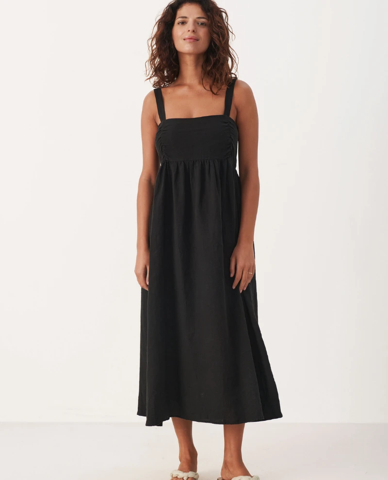 Part Two Amila Black Dress, a simple sundress with squared neckline and wide shoulder straps. Made from linen, the Amila has a lovely drape and is also available in a grenadine shade.
