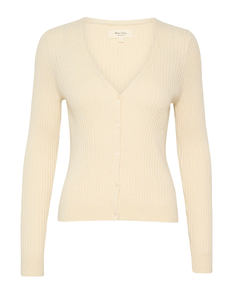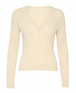 Stay comfortable in style with the Part Two Camusa Cream Cardigan. This lightweight and cozy cardigan is made with a luxurious blend of cashmere and cotton for ultimate softness. It features a v-neckline and buttoned front with long sleeves, making it perfect for any occasion.