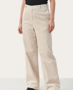 Made from soft and comfortable cord fabric, the Part Two Clarisse Perfectly Pale Trousers provide the perfect look for any occasion. Their mid-rise and straight leg construction ensures a classic and timeless silhouette that will look great every time. In a subtle pale cream color, these trousers are sure to become a staple in your wardrobe.