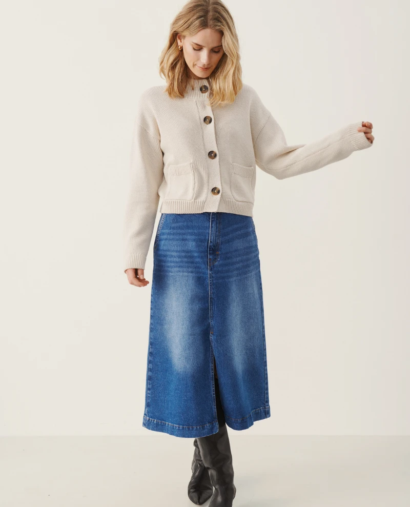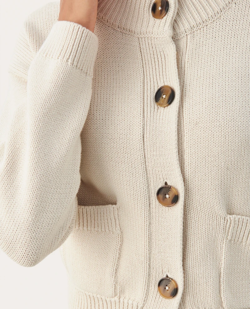 This Part Two Clene Cream Cardigan is the perfect addition to any wardrobe. Crafted in an elegant cream tone, this cardigan features a funnel-style neckline, buttoned front, and long sleeve with pocket detail. Its light fabric ensures comfort and ease of movement, making it perfect for any occasion.