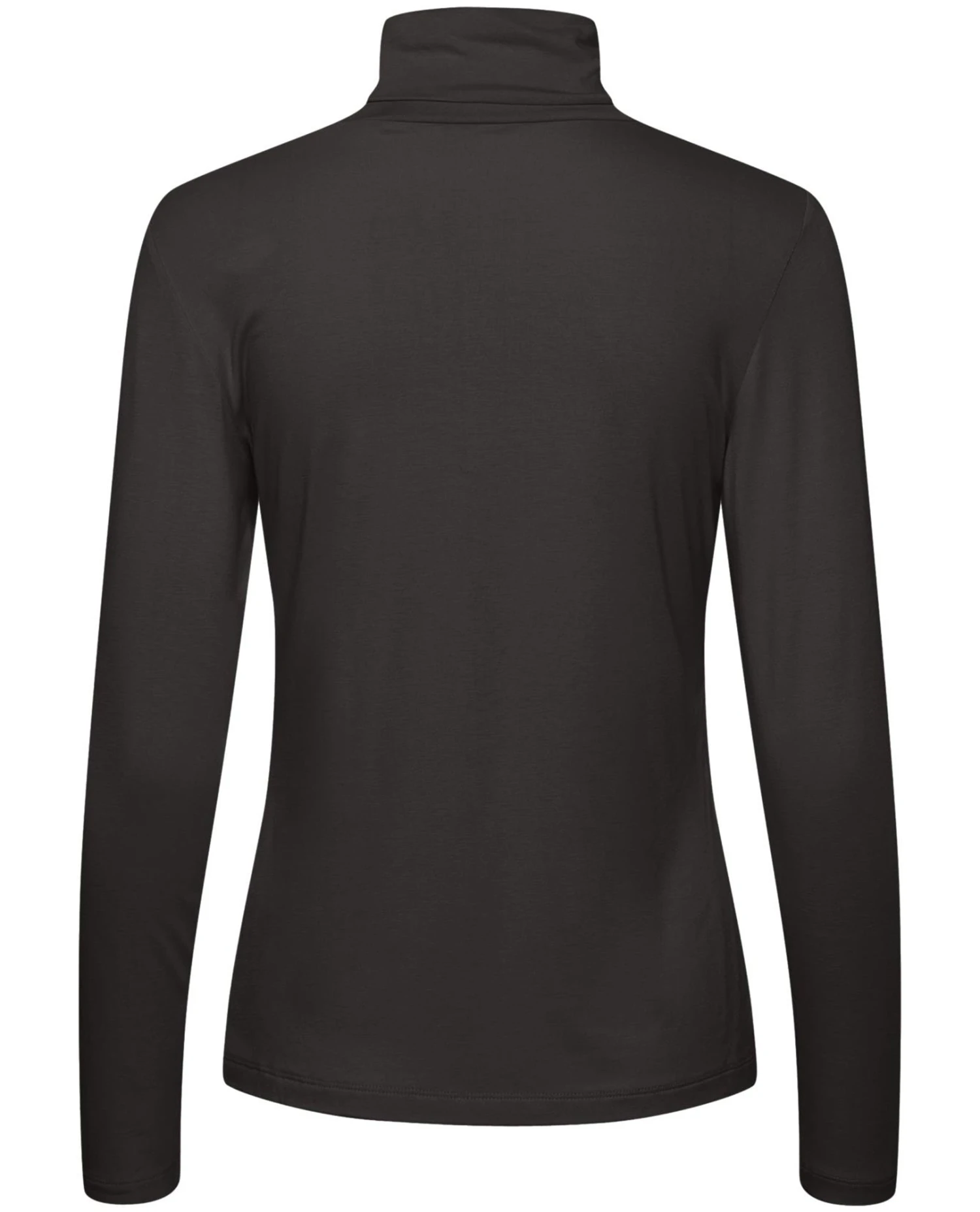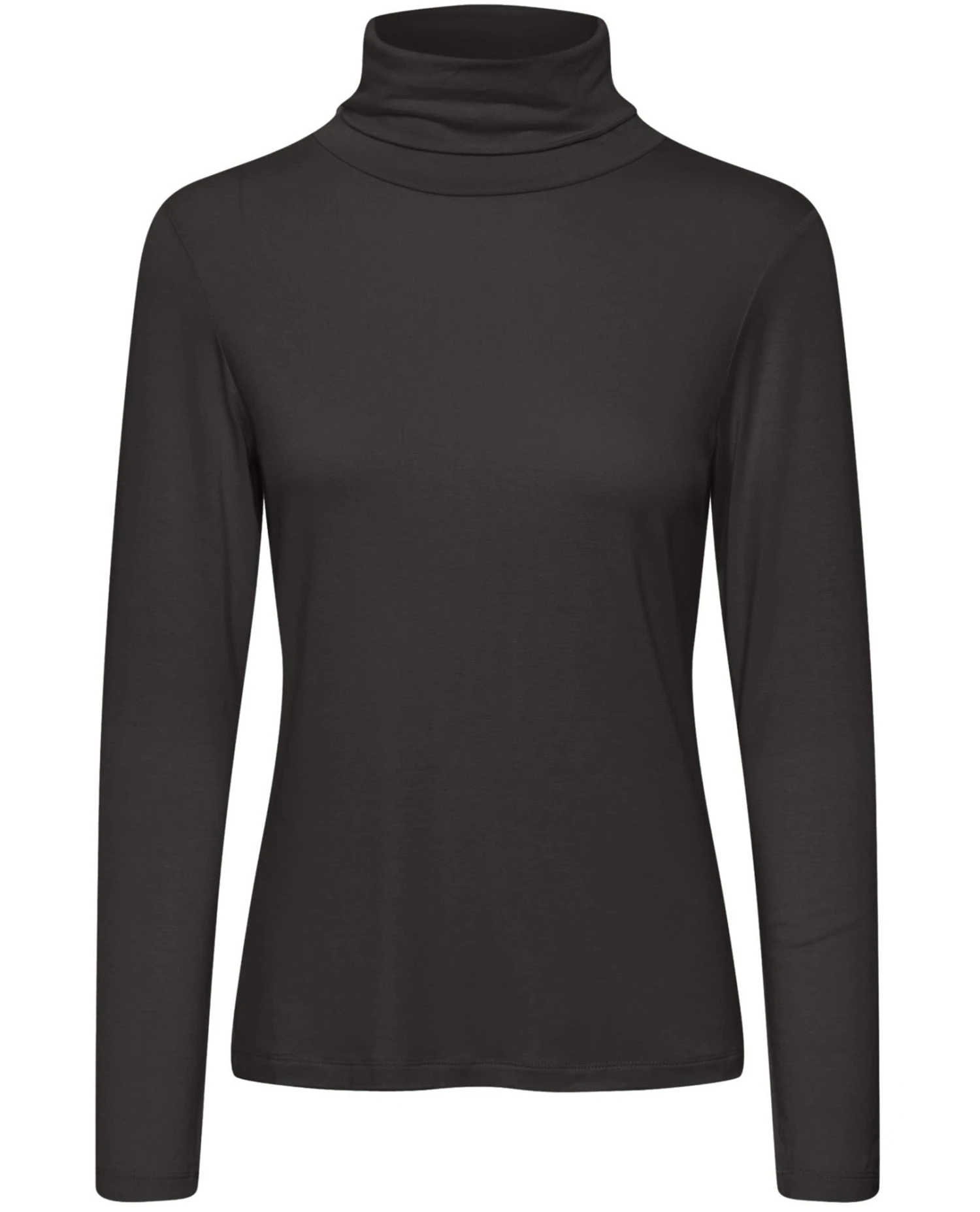 Part Two Efinas Black Top, a pure black figure hugging roll neck top made from stretchy viscose. A great layering piece this long sleeved t-shirt is lightweight and soft. Also available in cream and navy.