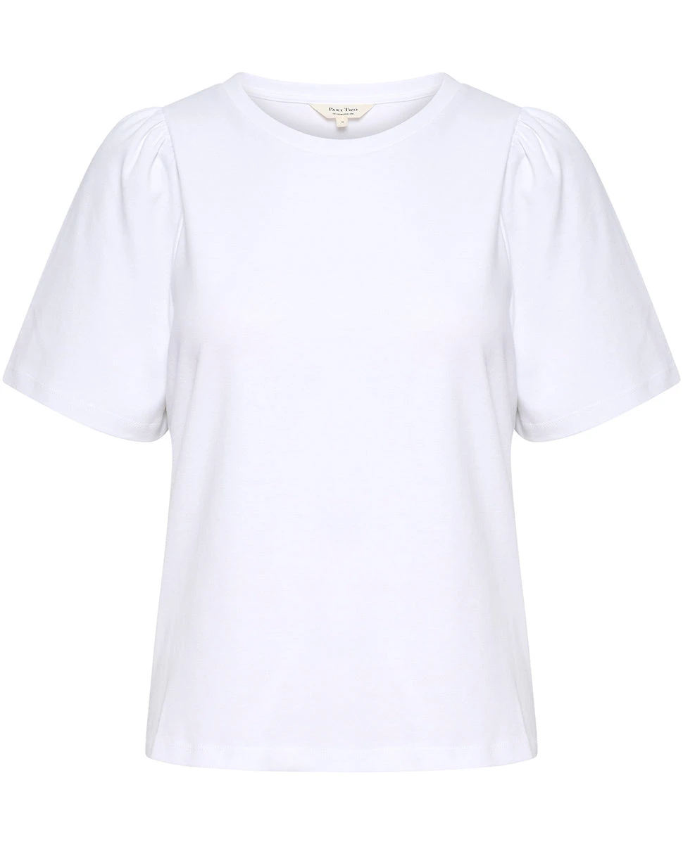 Part Two Imalea White T-Shirt, a pure white thick cotton t-shirt with short puffed sleeves and a round neck. This sustainable black cotton tee has a relaxed straight fit and also comes in black or blue. The everyday classic that every wardrobe needs.Ā Ā