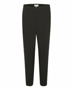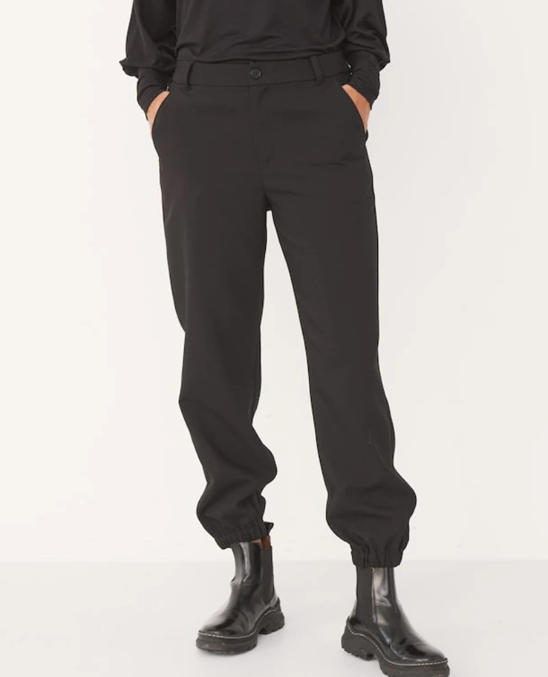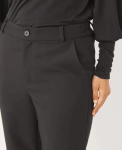 zip and Part Two Katja Black Trouser, a straight leg black trouser. In a mid rise and slim, straight leg, the Katja black trouser is finished with zip and button fastening as well as belt oops.