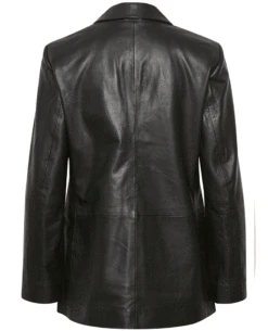 Part Two Kristie Black Leather Blazer, a buttery soft black leather jacket with long sleeves and flap pockets. Fully lined with classic black blazer fastens with a single popper.Â