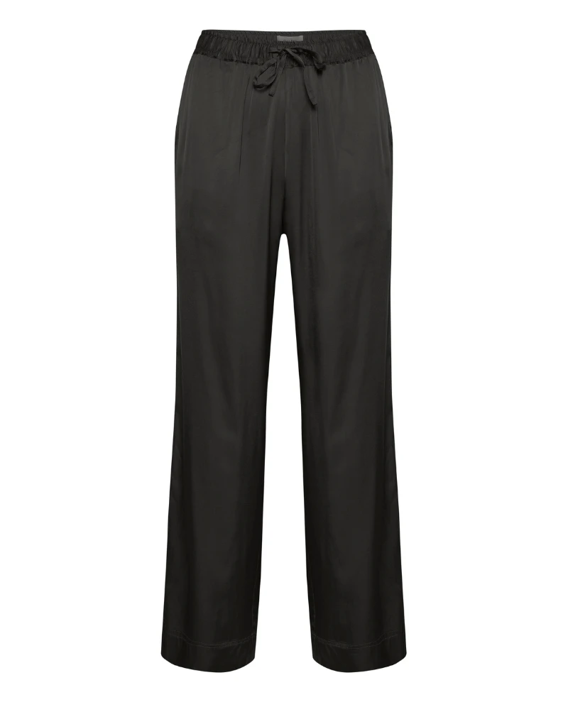 Part Two Tiara Black Trouser, an elegant drawstring waist trouser. In a deep black silky finish, the Tiara trousers look beautiful paired with soft knits and trainers throughout the Autumn/Winter months.
