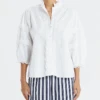 Pink City Prints Florence Sky Florentine Blouse, inspired by vintage shirts this block printed blouse features button down front with statement v-shaped ruffle and intricate lace and pin-tuck details. Style with jeans for everyday wear!