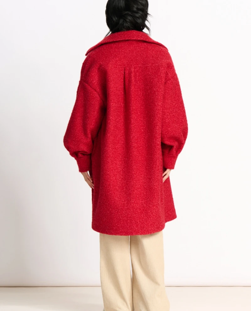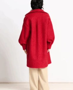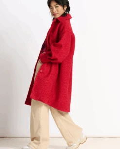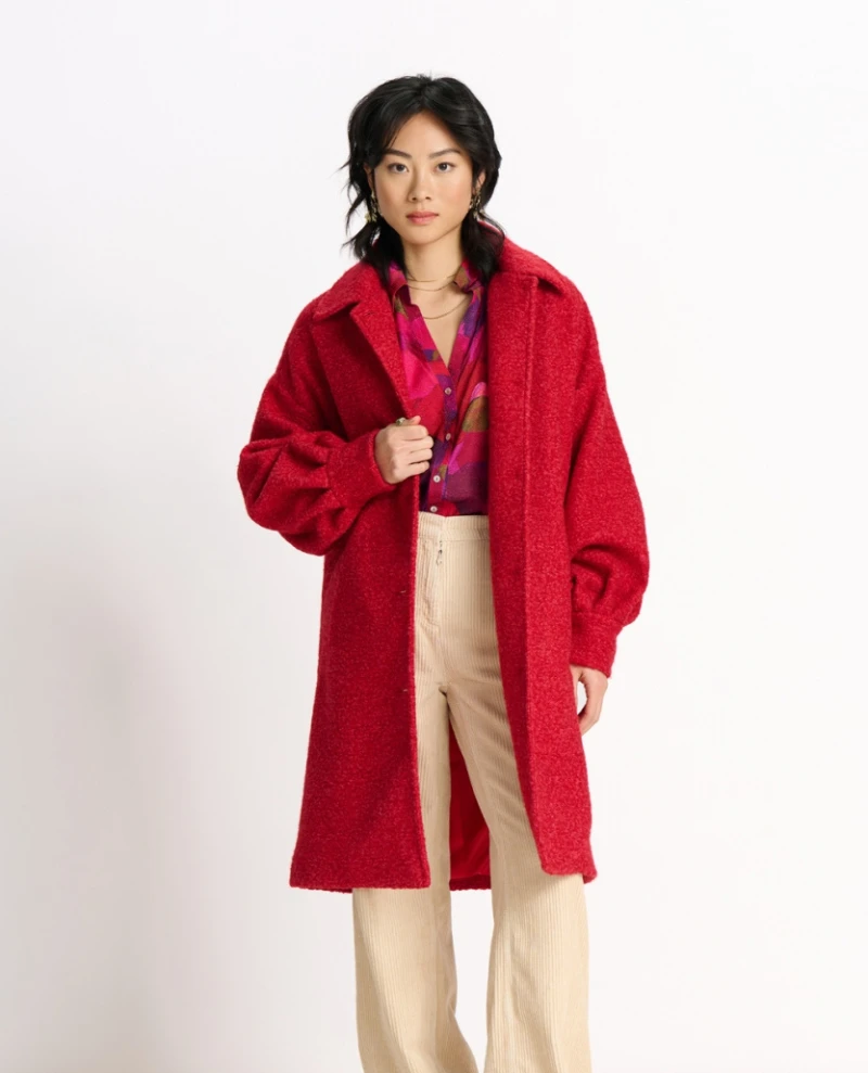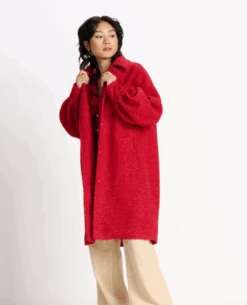 Stand out from the crowd in Pom Amsterdam’s Scarlet Red Coat. This gorgeous textured coat features a relaxed, slightly oversized fit with long sleeves and collar detail with buttoned-front. Perfect for any occasion, you can be sure to make a statement.