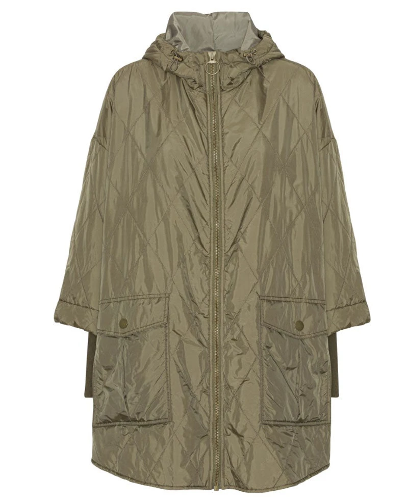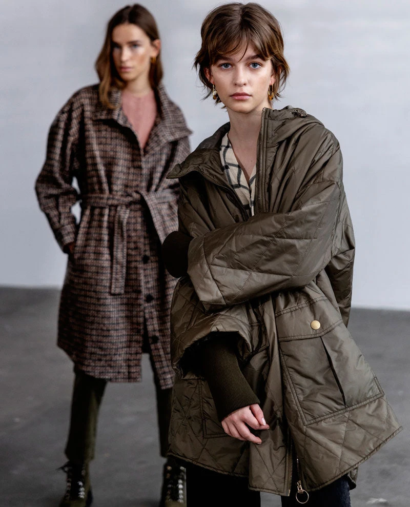 Project AJ117 Nora Army Jacket, a thermo nylon jacket complete with hood. Available in Army and Navy, this has long rib cuffs and kimono style sleeves. With two front pockets, press stud closure, this will keep you warm year-round.