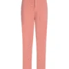 Reiko Sandy Pink Chino Trousers, a soft pale pink pair of classic chinos with a hook and zip fastening and belt loops. These slim fit pastel coloured trousers have pockets on the front and back as well as turned up hems and a sateen cotton finish.Â