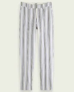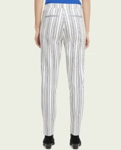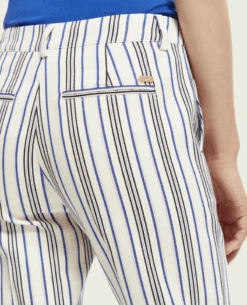 Scotch and Soda Lowry Mid-Rise Trouser, the perfect addition to your wardrobe. The Lowry trousers have a mid-rise and slim fit. The stripe detail elongated the leg with a hint of elastane providing all day comfort.