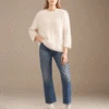 Second Female Brooky Banana Knit, a light yellow fluffy knitted pullover with a round neck and 3/4 length balloon sleeves. Also available in green the Brooky jumper is knitted from a stretchy blend of mohair and wool. The polyester gives it longevity.Â