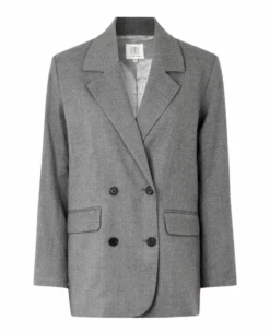 This grey blazer from Second Female is a versatile wardrobe essential. Crafted from a durable fabric, it features a double-breasted front with black buttoned detail and a relaxed fit. Perfect for formal or casual occasions, you’ll look effortless and confident in this blazer.