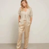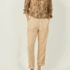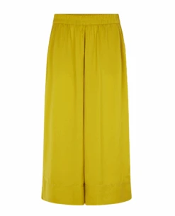 Second FemaleSecond Female Mingai Golden Olive Cropped Trousers, a vibrant satin trouser with an elasticated waistband. With two slanted pockets at the front and double hem at the bottom, the Mingai trousers have a fitted waist with wide, cropped leg.