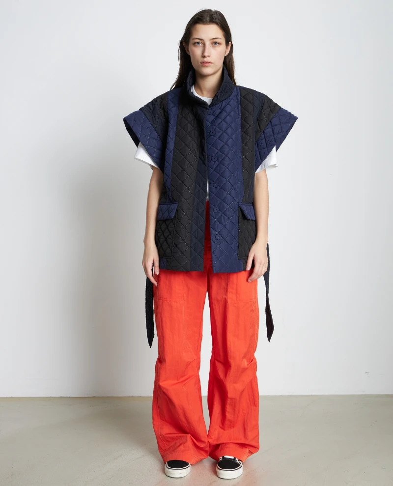 The Stella Nova Mattam quilted waistcoat is designed with soft quilting to add dimension and warmth to your wardrobe. Featuring a deep blue and black color-blocked design with a waist belt and patch pockets, this gilet is an ideal choice for keeping you cozy on chilly days.