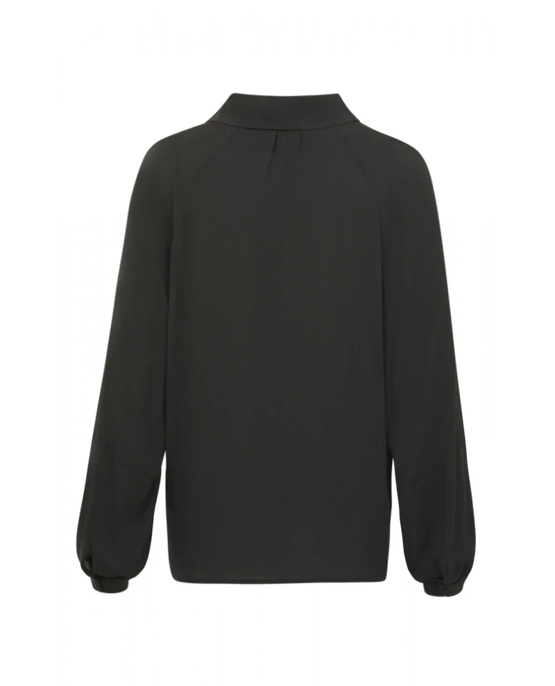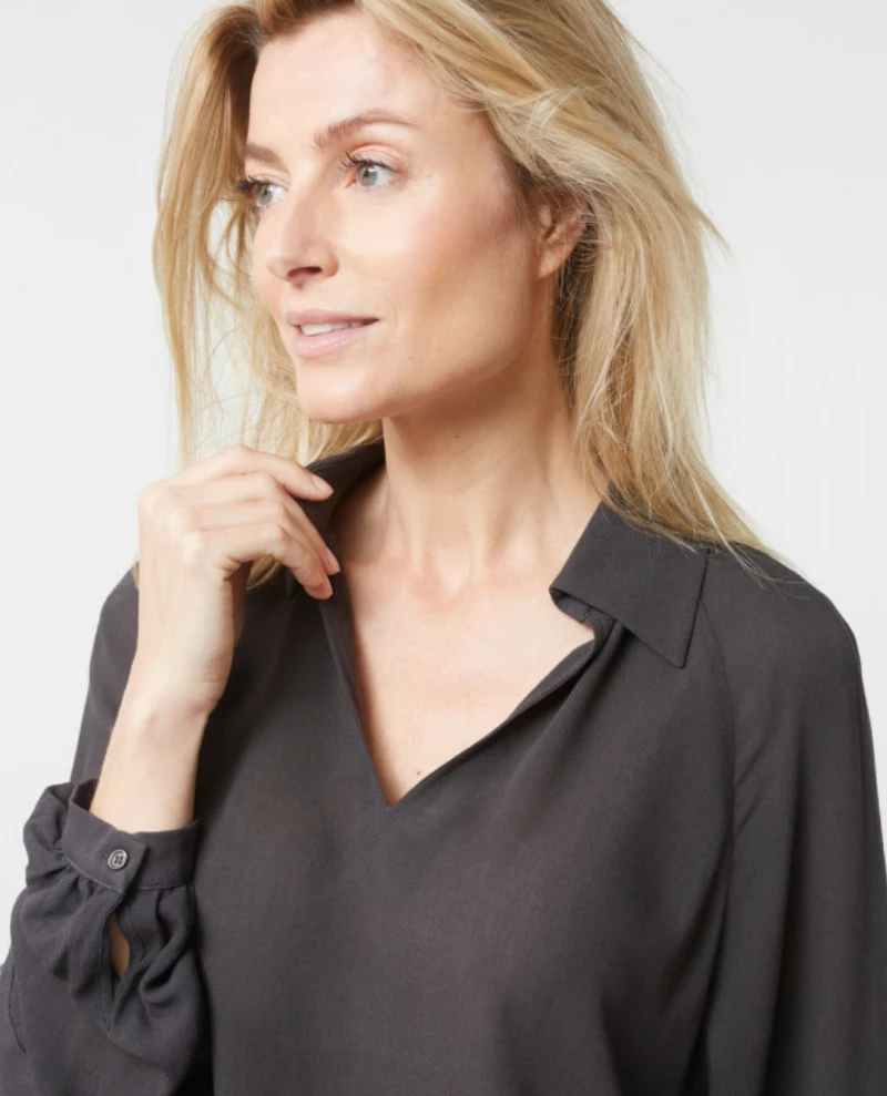 Yaya Bristol Black V-Neck Blouse, a light blouse with open, v-neckline and collar. Complete with long, buttoned cuff sleeves, this is an easy fitting blouse with relaxed fit and smart silhouette.