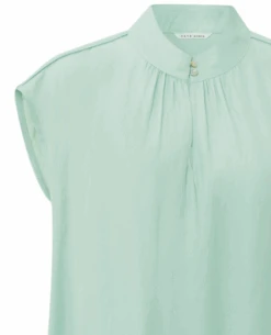 Yaya Harbor Grey Blue Top, a simple blouse in a grey-green tone. With a simple rounded collar and buttoned front, the Harbor grey top has a sleeveless finish and looks great whether tucked into denim or tailoring for a relaxed look.