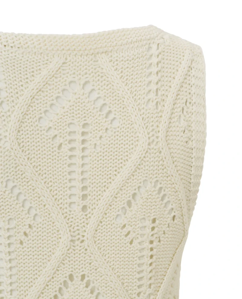 This white Yaya Wool Knitted Tanktop is crafted from a soft, textured wool blend perfect for the summer season. With a warm creamy tone, it features a sleeveless design with a rounded neckline for a timeless, classic look.